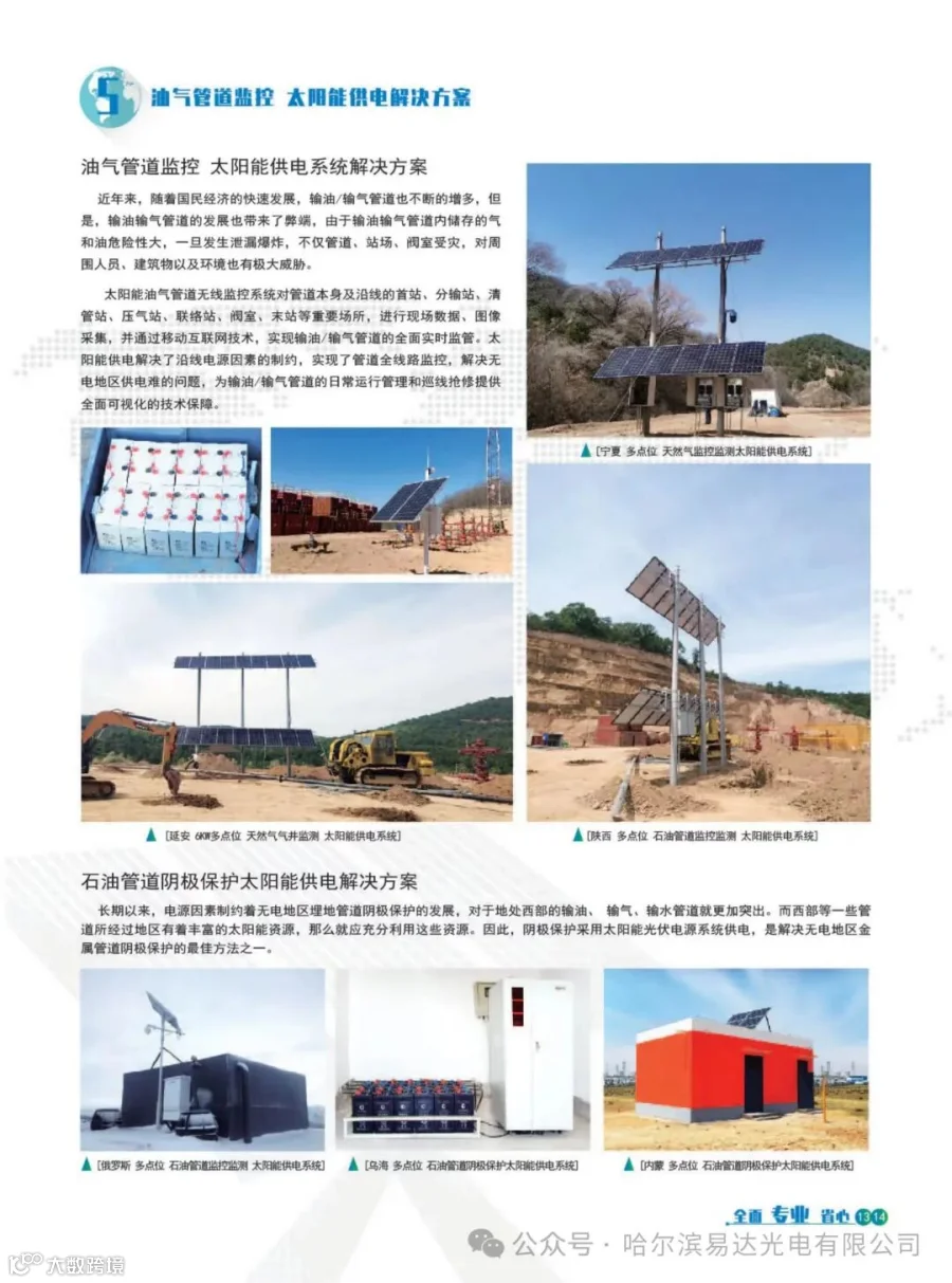 大型太阳能供电系统(Large DC):负载功率较大,需要配备较大的光伏组件阵列和蓄电池组,常用于通信、遥测、监测设备电源、农村集中供电、航标灯塔、路灯等。