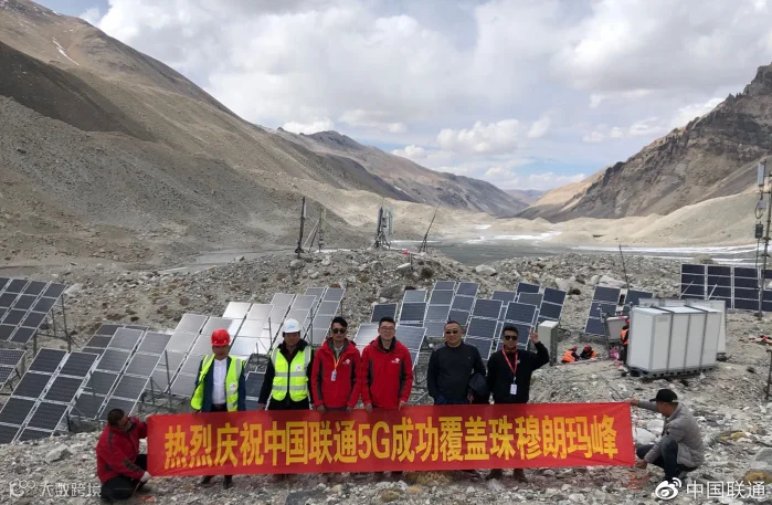 2020年4月,中国联通宣布,中国联通5G网络成功登上海拔5000米以上的珠穆朗玛峰,珠峰观景台和珠峰大本营一号营地正式实现5G全覆盖。基站采用太阳能发电系统进行供电,既保证了基站运营的能源供应,又最大限度的以新能源保护了珠峰的生态,在减少污染的同时节约了运营成本。