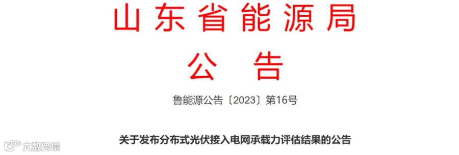 近日了解到,2024年12月18日,山东能源局发布 鲁能源公告〔2023〕第16号《关于发布分布式光伏接入电网承载力评估结果的公告》。
