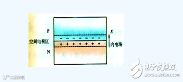 当P型和N型半导体结合在一起时,在两种半导体的交界面区域里会形成一个特殊的薄层), 界面的P型一侧带负电,N型一侧带正电。这是由于P型半导体多空穴,N型半导体多自由电子, 出现了浓度差。N区的电子会扩散到P区,P区的空穴会扩散到N区,一旦扩散就形成了一个由N 指向P的“内电场”,从而阻止扩散进行。达到平衡后,就形成了这样一个特殊的薄层形成电势差,这就是PN结。