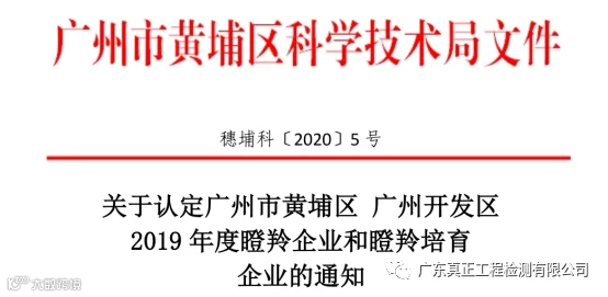 近日,从广州市黄埔区科学技术局《关于认定广州市黄埔区 广州开发区2019年度瞪羚企业和瞪羚培育企业的通知》(穗埔科〔2020〕5 号)获悉,我司获认定为“广州市黄埔区广州开发区2019年度瞪羚企业”,将按有关规定享受相应扶持政策。