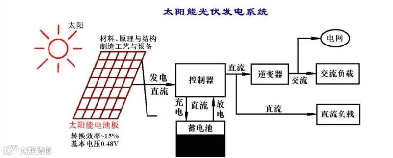 其作用是将太阳光的辐射能量转换为直流电能,送往蓄电池中存储起来,也可以直接用于推动直流负载工作,或通过光伏逆变器转换为交流电为用户供电或并网发电。