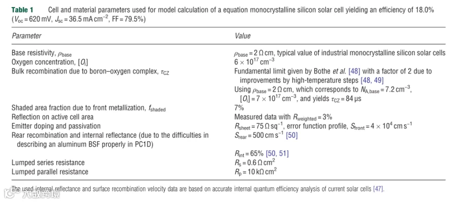 为了优化效率,也就是减少硅太阳能电池的功率损失,了解不同的电池和材料参数的影响是很重要的,比如说体积寿命和电池厚度。一般来说,基本参数的影响可以根据相关的损失机制来分类。