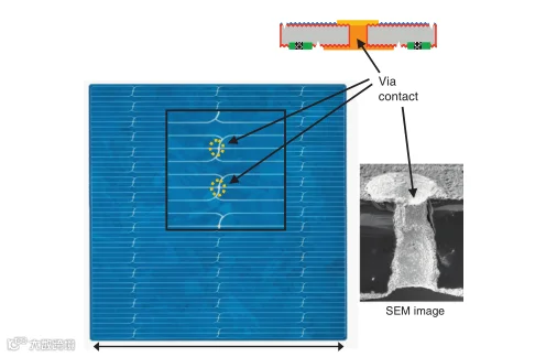 图24 MWT(金属包覆)太阳能电池的图片和结构。
