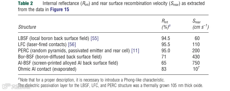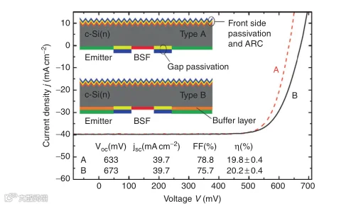 通过在后部发射器表面添加钝化层,可以减少发射器的暗饱和电流(Joe)[204],增加内部光学反射率。通过这种方式,已经证明效率超过20%[203]。