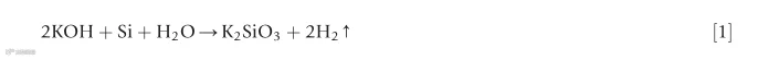 所使用的制绒工艺的差异主要取决于晶圆的结晶度。单晶硅片在70-80℃的热氢氧化钠水溶液中与有机添加剂(通常是异丙醇)进行约20-30分钟的蚀刻,以达到无规金字塔结构。主要的反应可以概括为