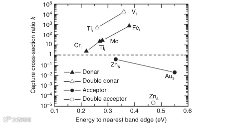 图21晶体硅中不同杂质的捕获截面作为能级的函数。转载自MacdonaldD和GeerligsLJ(2004)《应用物理快报》85(18): 4061 - 4063[123]。版权所有,美国物理研究所。