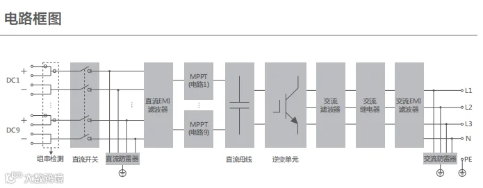 逆变器:交流接线端子的PE端和机箱外壳的PE接地。
