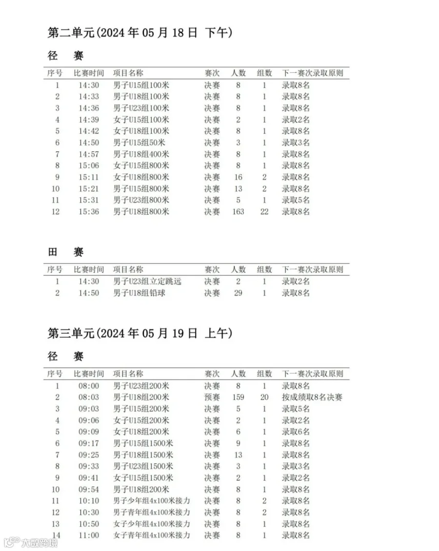 2. 径赛项目:于比赛时间提前30分钟检录;