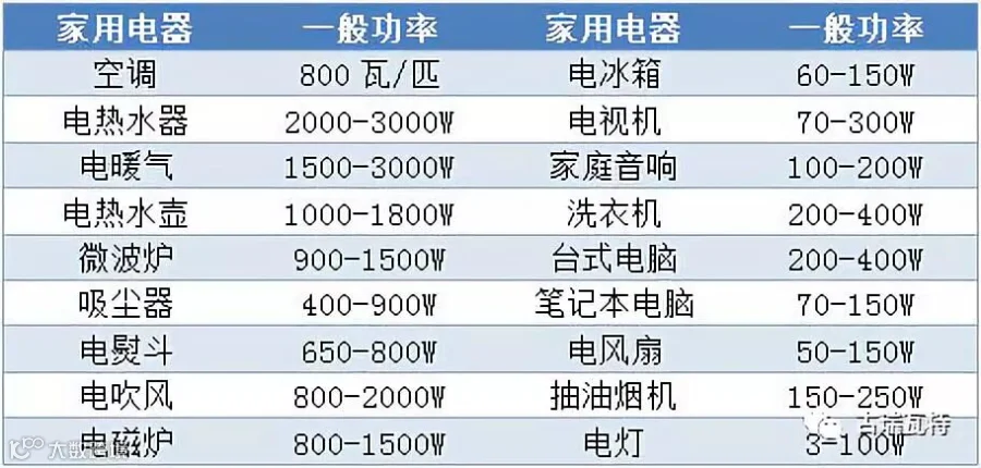 照明200瓦,冰箱50瓦,空调750W,电视机50瓦,洗衣机算300W,台式电脑200W,电饭锅1200W,电风扇100W,总计2850W,选用古瑞瓦特SPF 5000控制逆变一体机,输出功率为4.0KW。
