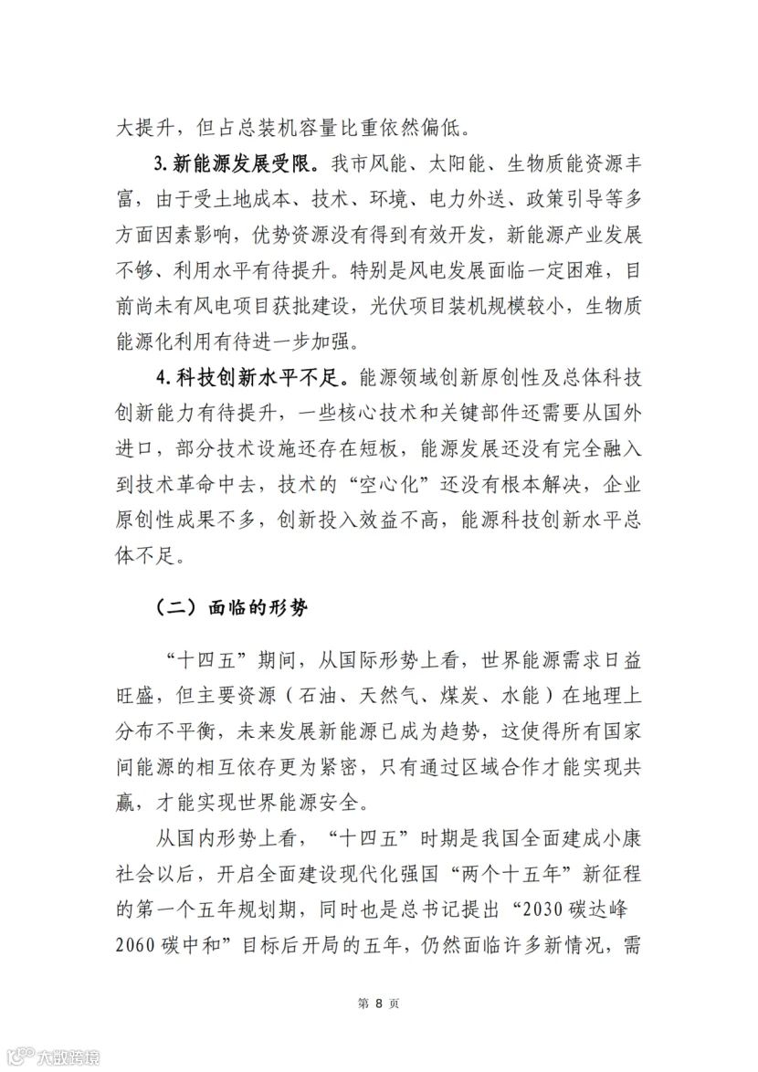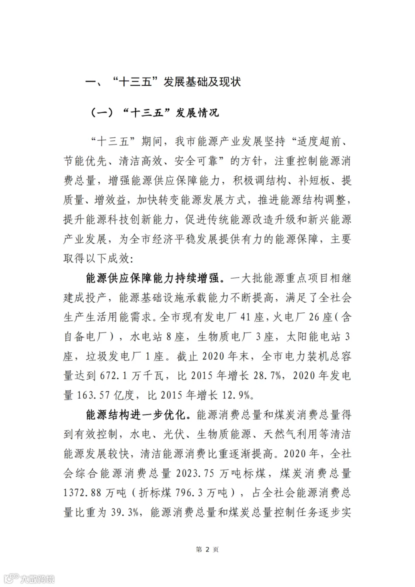市能源发展“十四五”规划(征求意见稿)》发布,
