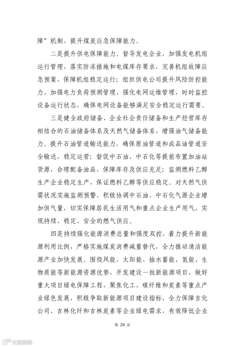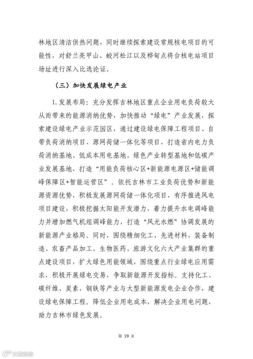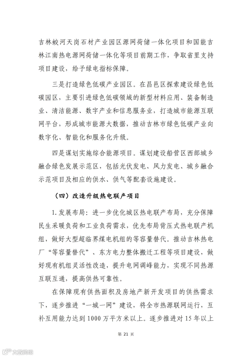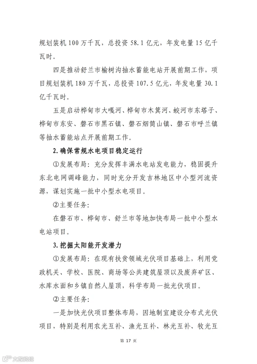 新能源方面。一是科学谋划布局水电、风电、光伏发电等清洁能源项目、发展自带负荷和源网荷储一体化项目、打造绿电产业示范园区,吸引、集聚并推动新能源产业快速发展;二是通过严格环境准入,严格整治“散乱污”企业,实施工业园区节能改造,推进重点行业绿色转型;三是迈出“减排”行动重要一步,助力吉林市能源转型升级和绿色发展。