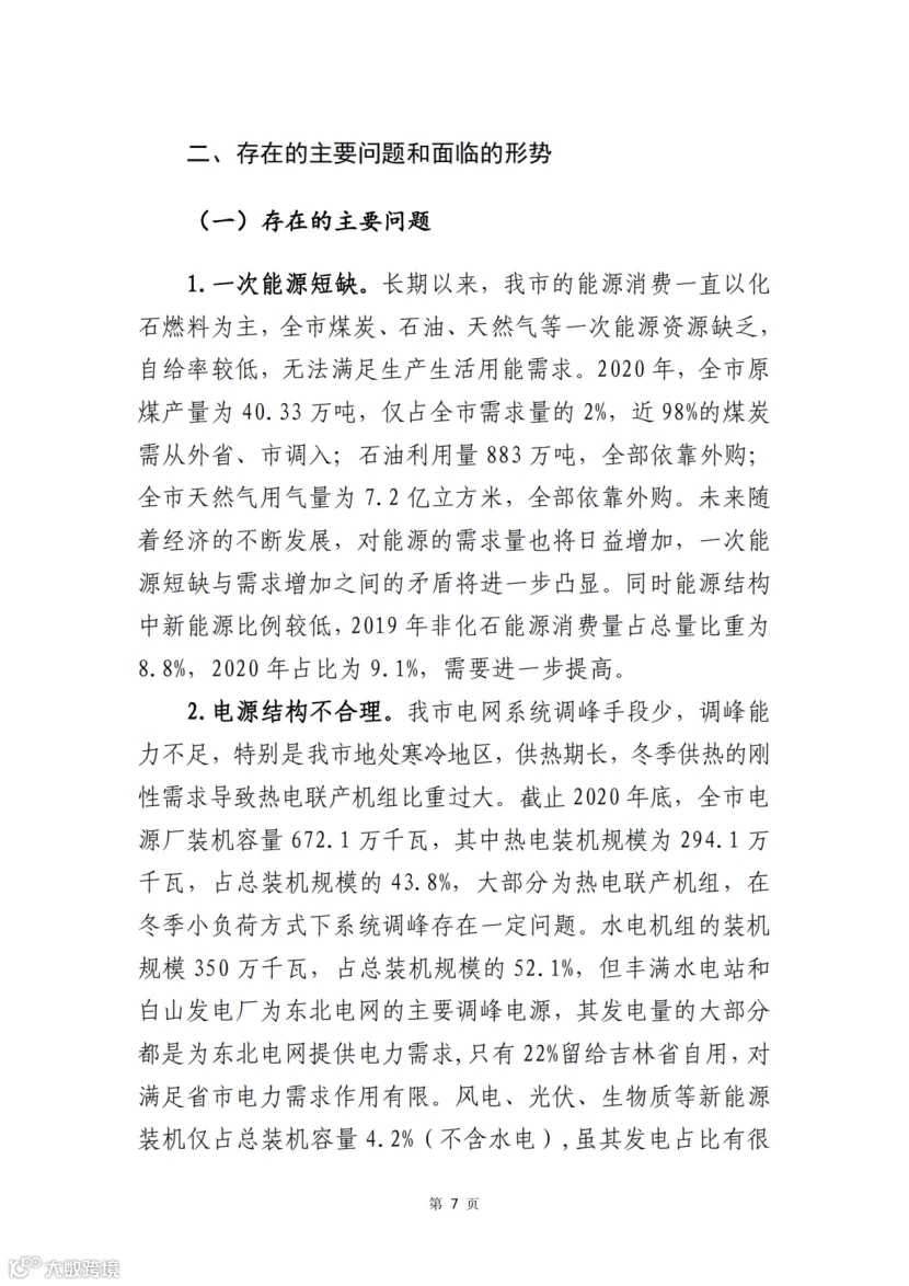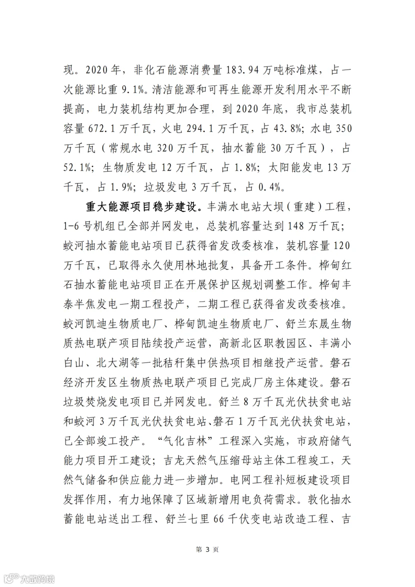 导读:近日,《吉林市能源发展“十四五”规划(征求意见稿)》发布,到2025年底,全市建成投产的发电总装机容量规模达