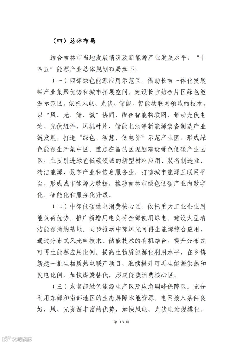 借助长吉一体化发展带产业集聚优势和城市拓展空间,建设长吉结合片区绿色能源示范区,依托风电、光伏、储能、智能物联网领域的技术,以“风、光、储、氢”协同,配合智能物联网,带动光伏电站、光伏组件、风机叶片、储能电池等新能源装备制造产业链发展,打造“绿色、智慧、低电价”示范产业园,形成绿色能源生产集中区。重点在昌邑区规划建设绿色低碳产业园区,主要引进绿色低碳领域的新型材料应用、装备制造业、清洁能源、数字产业和信息