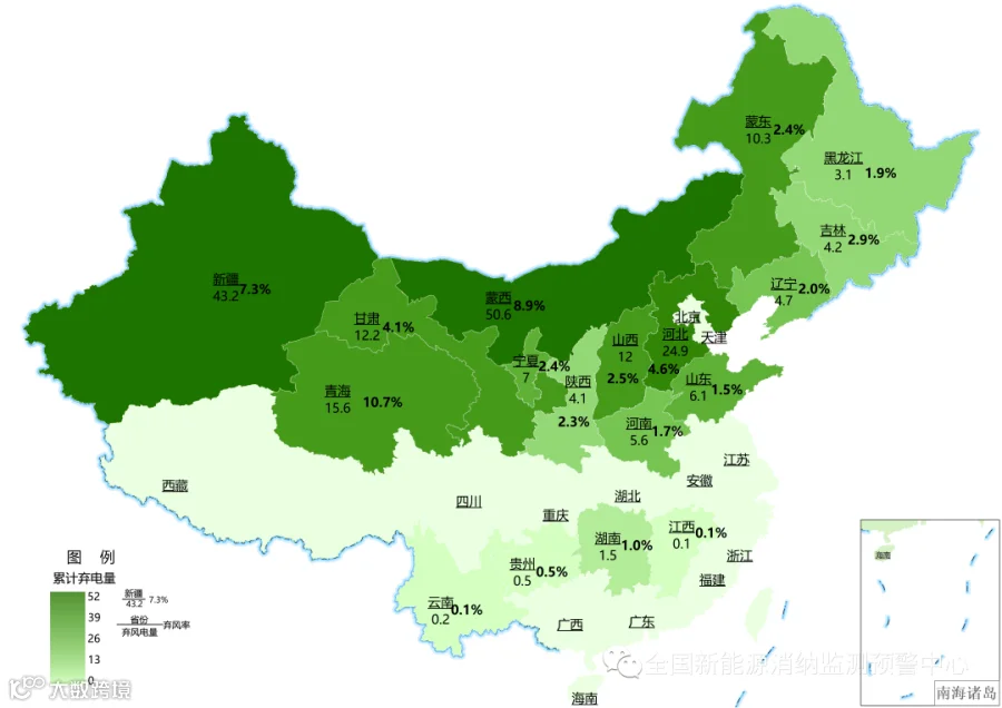 各地区2021年累计弃风电量(亿千瓦时)及弃风率