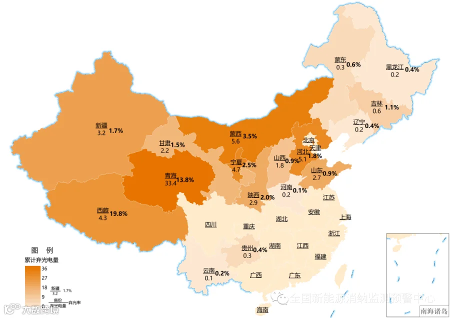各地区2021年累计弃光电量(亿千瓦时)及弃光率