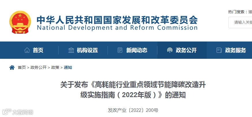 关于发布《高耗能行业重点领域节能降碳改造升级实施指南(2022年版)》的通知