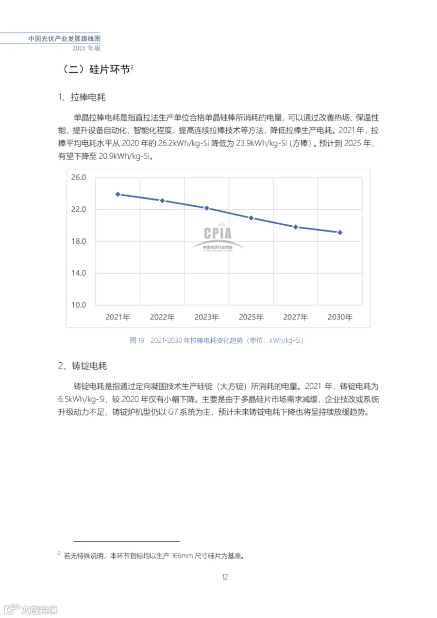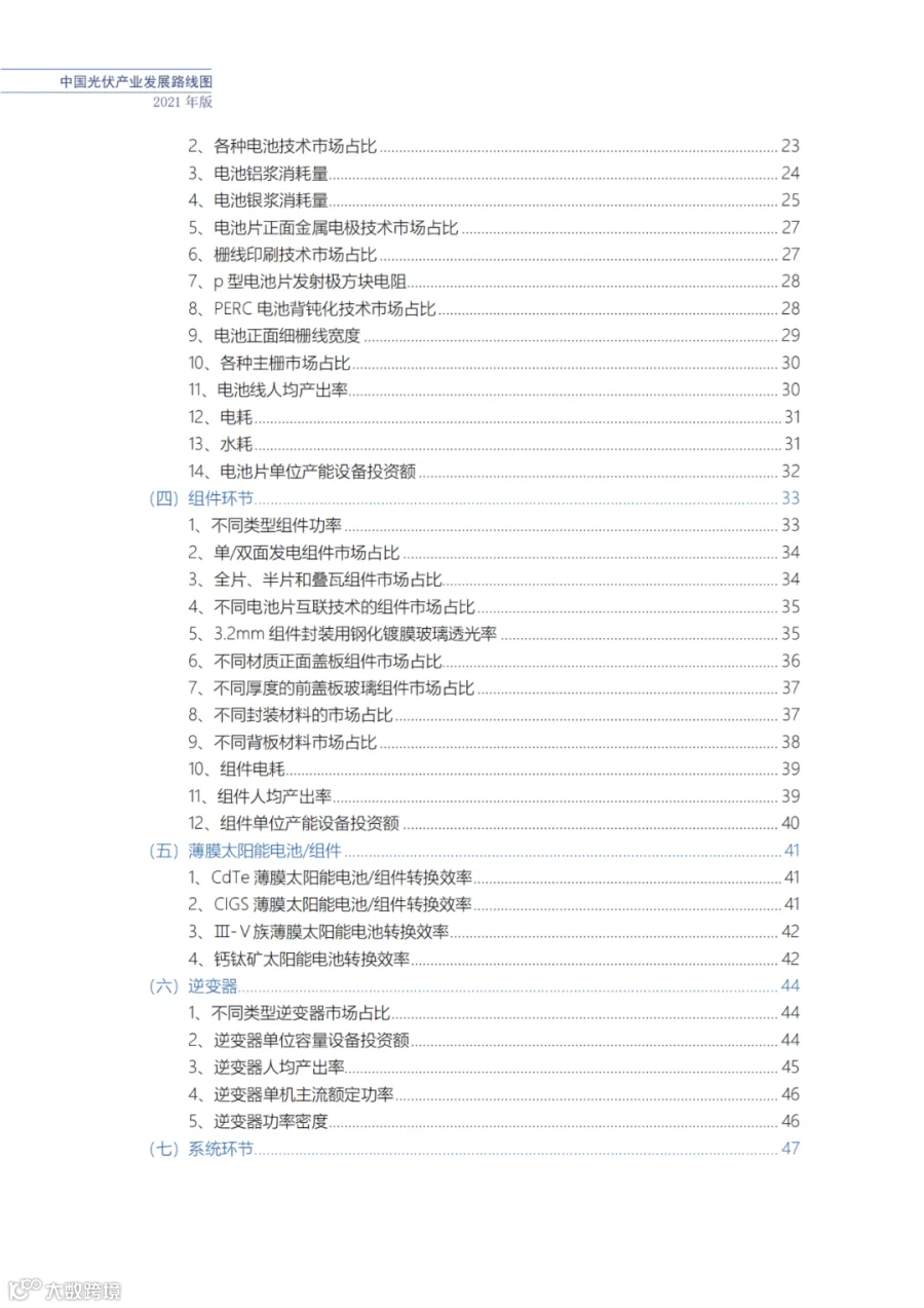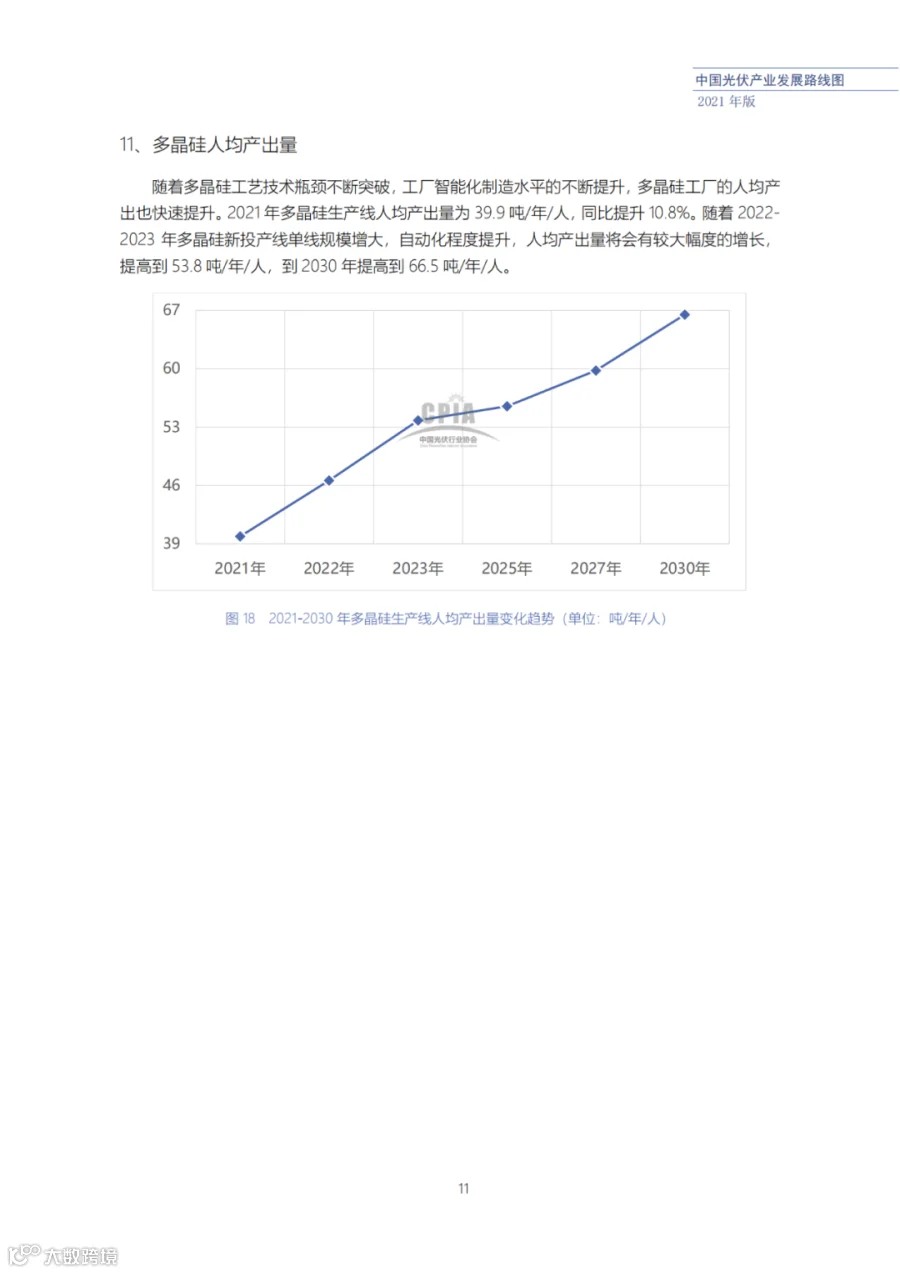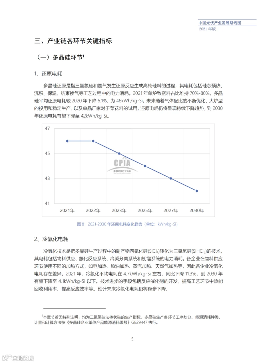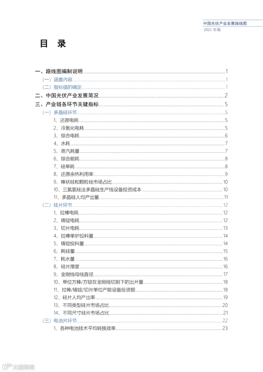 近日了解到,中国光伏行业协会发布了《中国光伏产业发展路线图(2021年版)》,内容涵盖了光伏产业链上下游各环节,包括多晶硅、硅棒/硅锭/硅片、电池、组件、逆变器、系统等各环节共67个关键指标。
