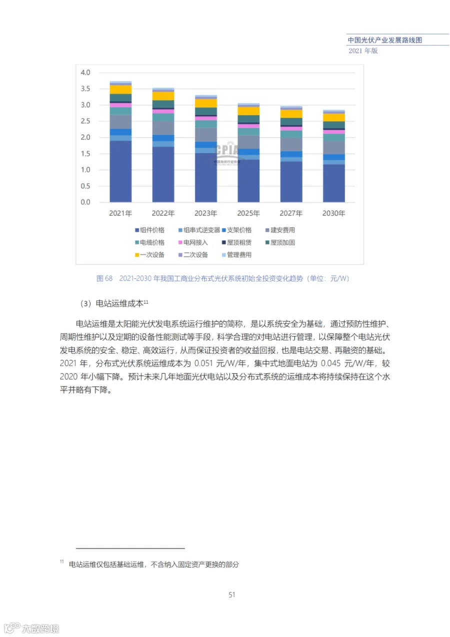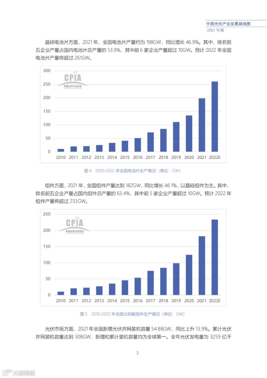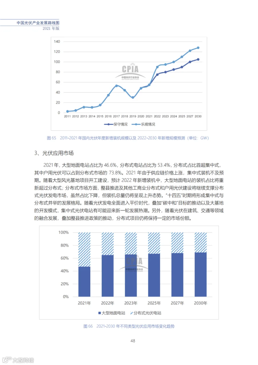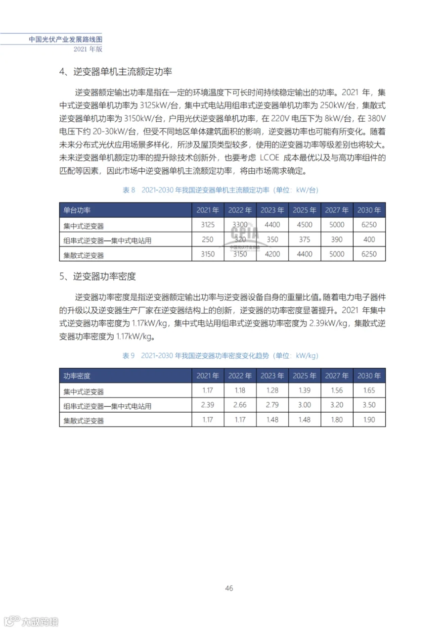 近日了解到,中国光伏行业协会发布了《中国光伏产业发展路线图(2021年版)》,内容涵盖了光伏产业链上下游各环节,包括多晶硅、硅棒/硅锭/硅片、电池、组件、逆变器、系统等各环节共67个关键指标。