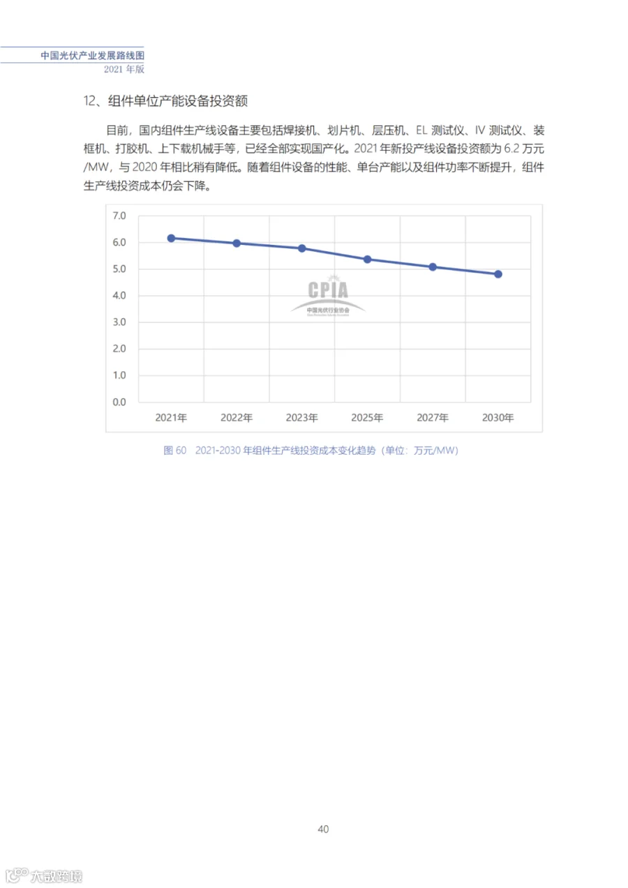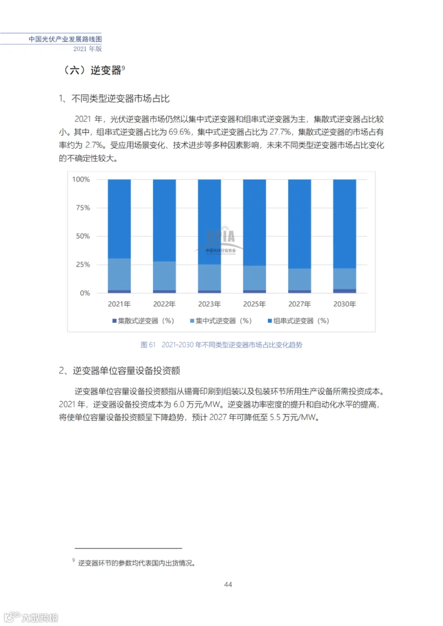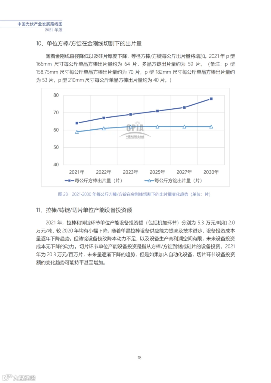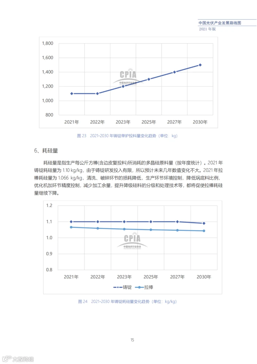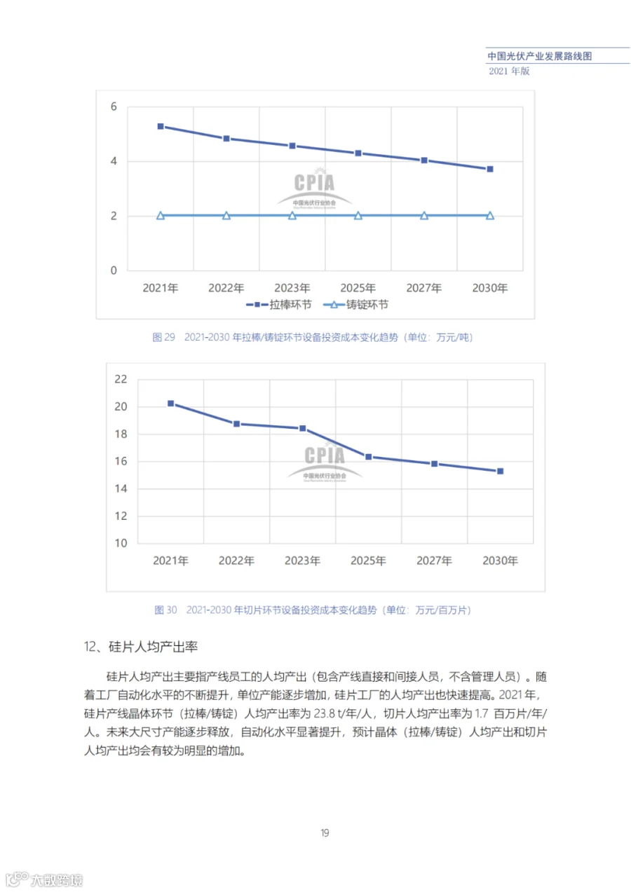 近日了解到,中国光伏行业协会发布了《中国光伏产业发展路线图(2021年版)》,内容涵盖了光伏产业链上下游各环节,包括多晶硅、硅棒/硅锭/硅片、电池、组件、逆变器、系统等各环节共67个关键指标。
