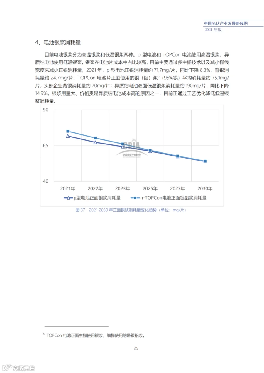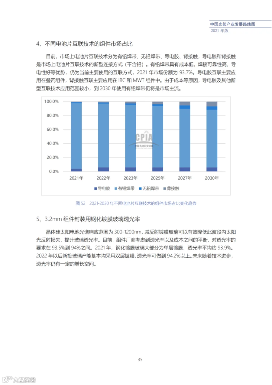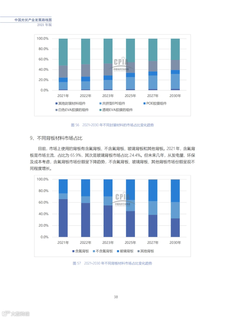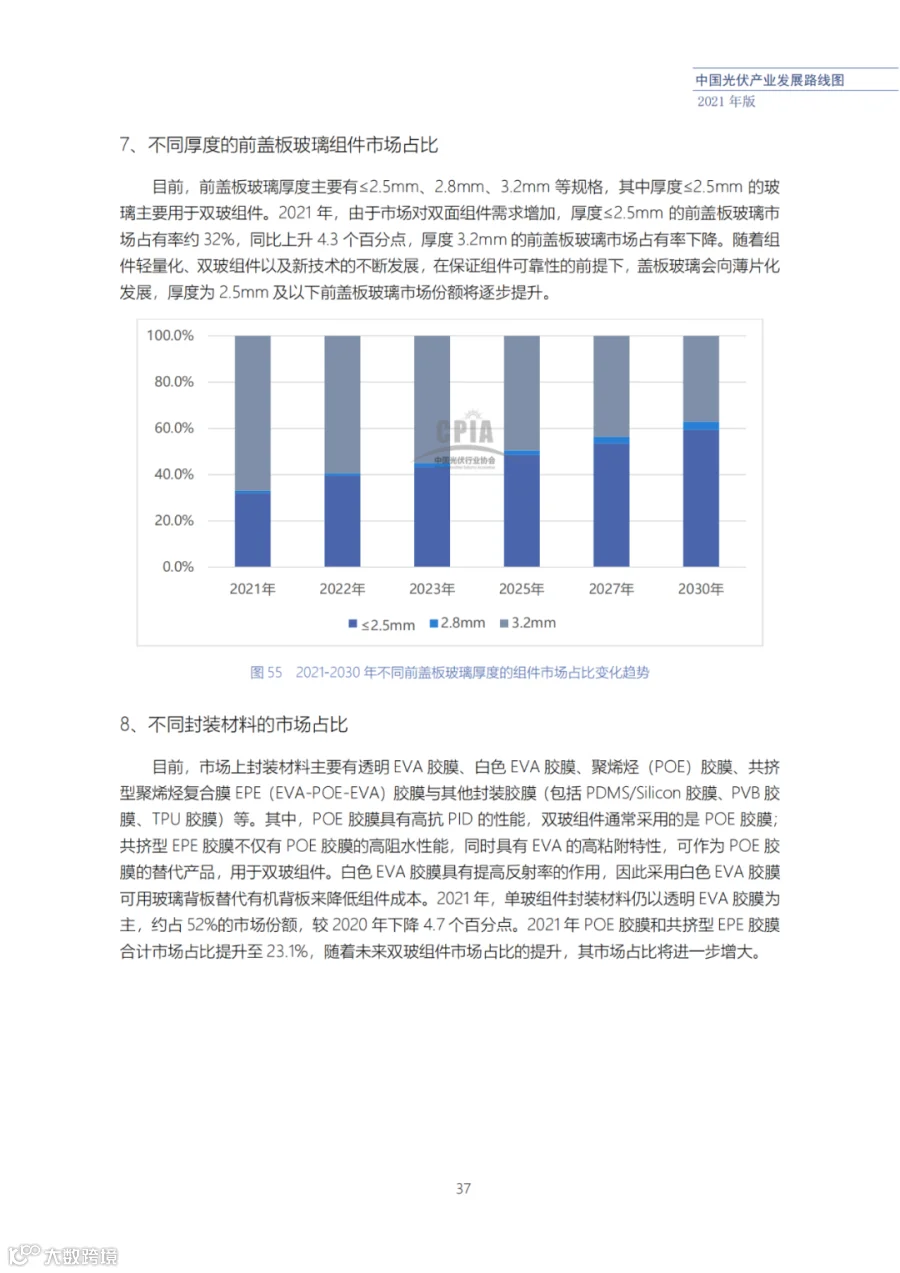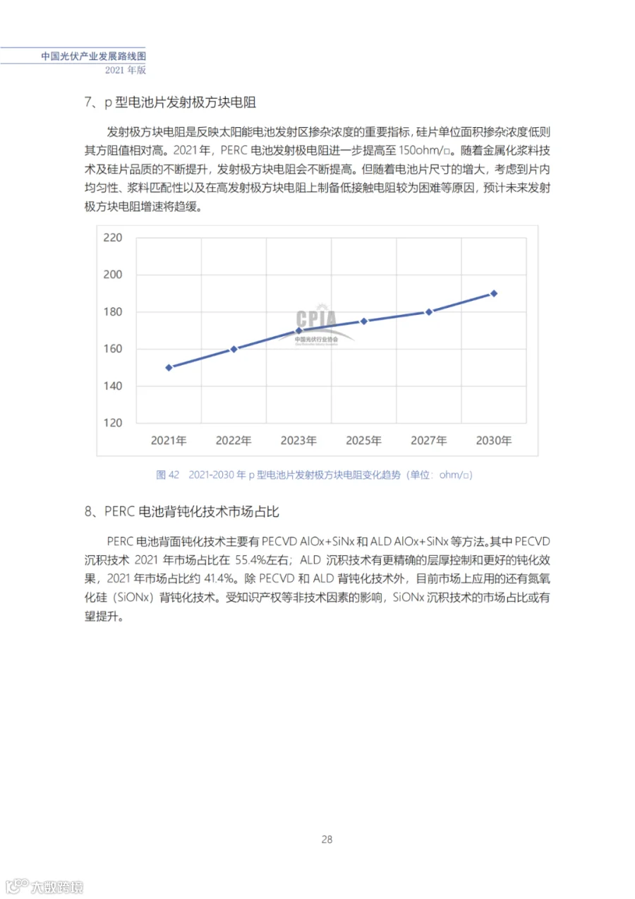 该路线图根据产业实际情况,结合技术演进进程以及企业技改现状,总结了2021年发展情况并预测了2022、2023、2025、2027和2030年的发展趋势。这些指标体现了光伏产业、技术、市场等发展现状和发展趋势,具有一定的前瞻性,供社会各界朋友参考。