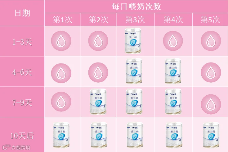 所以无论是同一种牌子不同阶段奶粉的转换还是从一种奶粉转换到另外一种奶粉,都需要一个转奶的过程,大约至少需要1周的时间。要注意的是:
