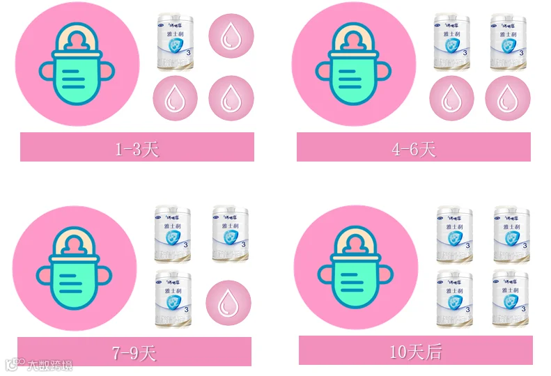 2、相同的牌子,不同的阶段之间的奶粉互相转换;