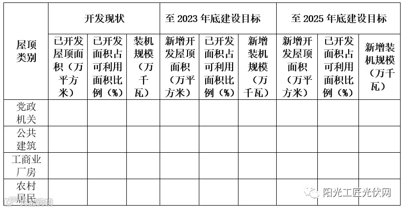按照2023年底、2025年底两个时间节点,分别提出屋顶光伏已开发利用面积及占比、新增装机规模等发展目标。