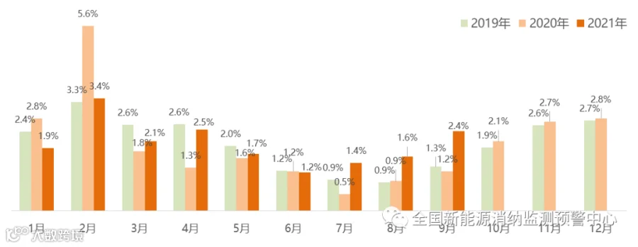 截至9月底全国弃光率月度变化情况