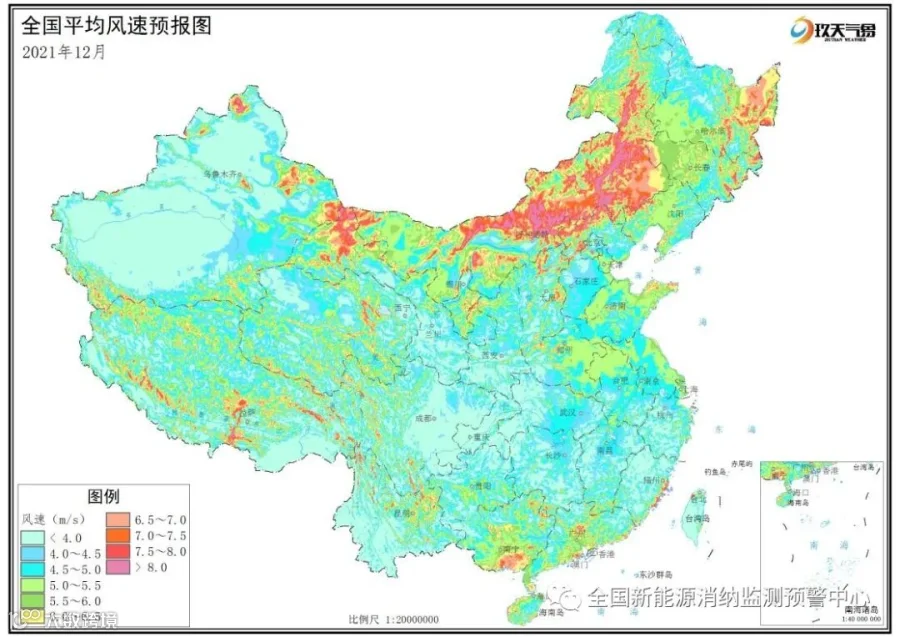 附图5 全国2021年12月平均风速分布预报图