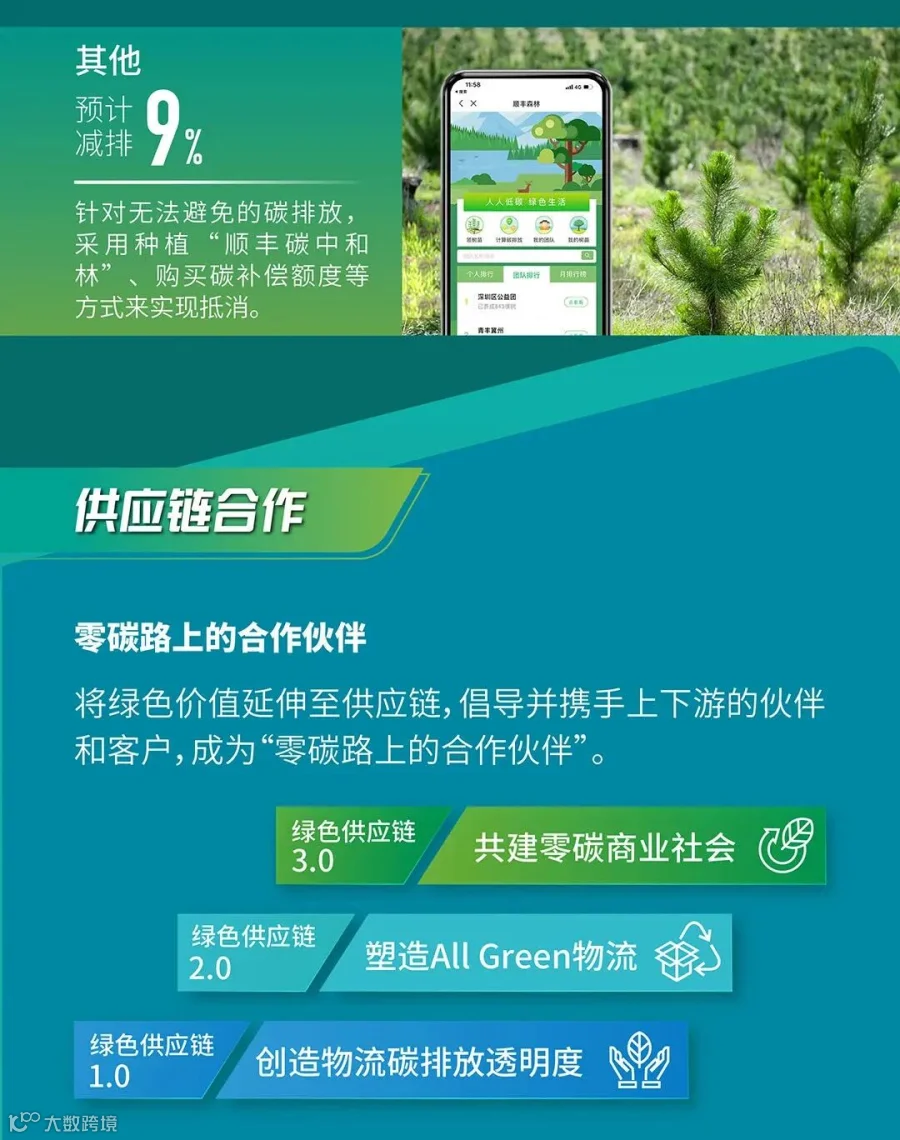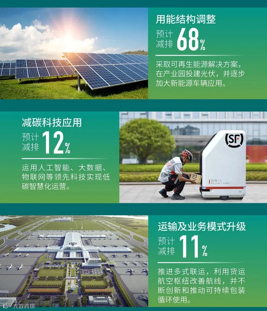 其中,顺丰拟通过用能结构调整实现68%的减碳目标,