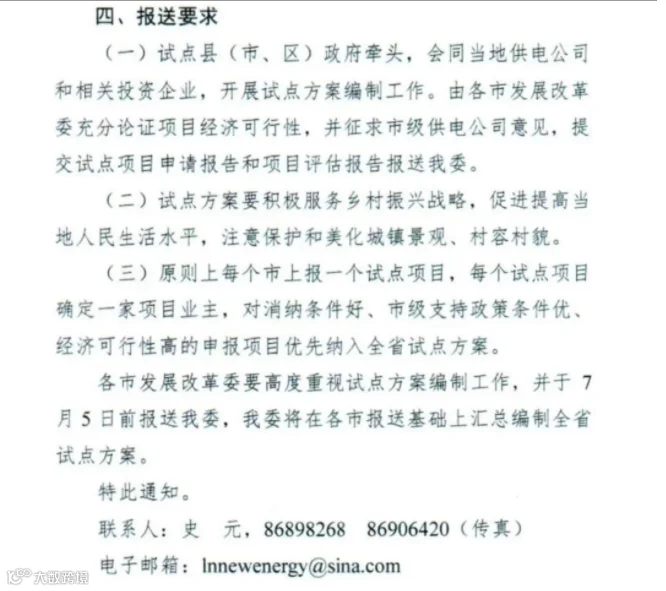 原则上每个市上报一个试点项目,每个试点项目确定一家项目业主,对消纳条件好、市级支持政策条件优、经济可行性高的申报项目优先纳入全省试点方案,并于7日5日前报送发改委。