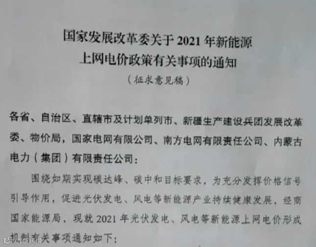 近日,国家发改委就2021年新能源上网电价政策征求了相关部门意见,根据征求意见稿,2021年起新备案集中式光伏电站、工商业分布式光伏和新核准陆上风电项目,中央财政不再补贴。户用光伏电站2021年仍有3分/度的补贴,并且按照全发电量进行补贴,2022年起不再进行补贴。