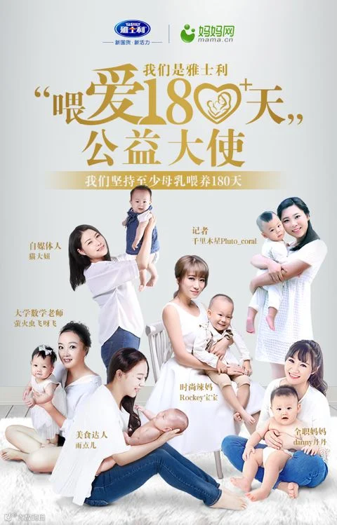 2016年,雅士利联合妈妈网发起“喂爱180天”公益活动,征集妈妈大使为母乳喂养代言,并向全网免费派送了哺乳巾。