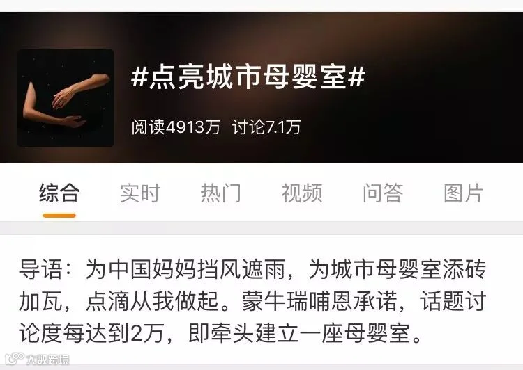 2017年,雅士利旗下瑞哺恩在新浪微博发起“点亮城市母婴室”的话题。希望通过这样的方式来引起大众对公共育婴室、对背奶妈妈这一群体的关注。这一活动不仅受到了广大背奶妈妈积极参与,各地网友也纷纷发言力挺,微博话题讨论数达7.1万,阅读数近5000万。