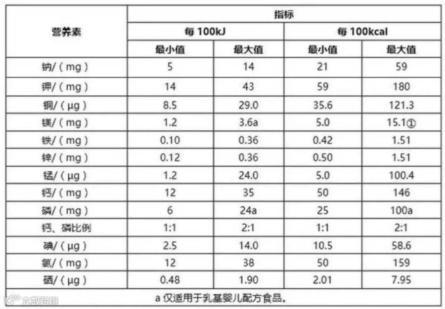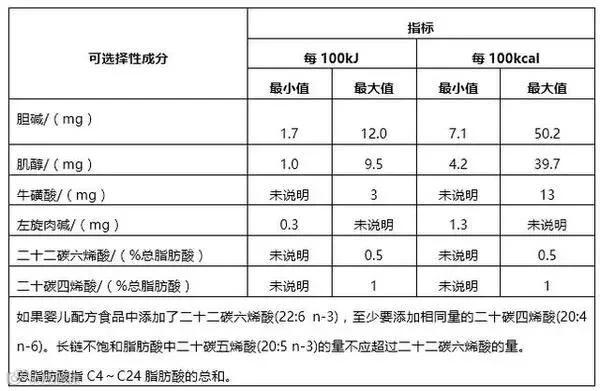 数据来源:《食品安全国家标准婴儿配方食品》(GB10765- 2010)