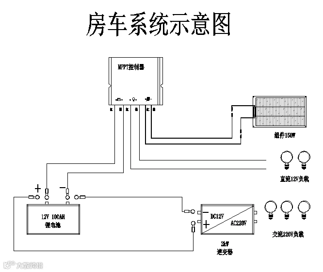 本设计主要利用太阳能给房车提供能源,利用充足的阳光进行太阳能发电,白天发电并存储,给房车内的冰箱、照明、电视供电,自动控制,无需留人看管,无尾气、噪音、振动和燃油消耗问题。电池选用智能磷酸铁锂电池,自带加热膜,完全解决低温问题。