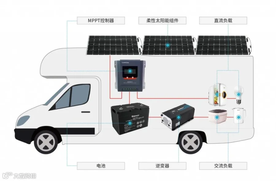 房车外部供电方式一般有三种:电网供电、发电机和太阳能发电;太阳能供电是最佳的必备选项。