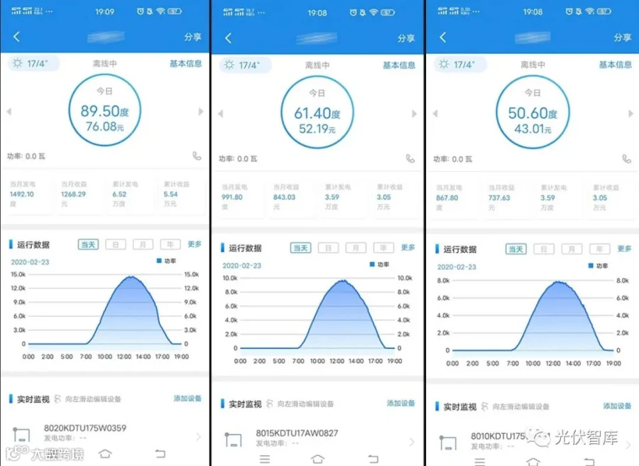 算账之前,笔者收集了几组最近在朋友圈晒的光伏收益截图,更加直观清晰: