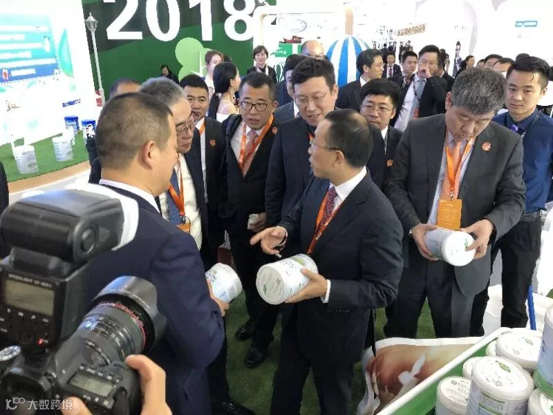 蒙牛集团总裁卢敏放与雅士利集团总裁张平等众多领导和各地的经销商,来到了每一个展位前,并拿起奶粉,仔细研究着配方注册通过后的最新包装产品,互相探讨2018年奶粉品牌和产品的发展之道。