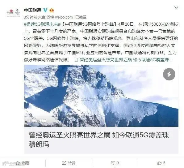 近日,继中国电信、中国移动后,中国联通也宣布其5G网络登上珠峰。当日,在超过5000米的海拔上,冒着零下十几度的严寒,中国联通实现珠峰观景台和珠峰大本营一号营地的5G全覆盖。