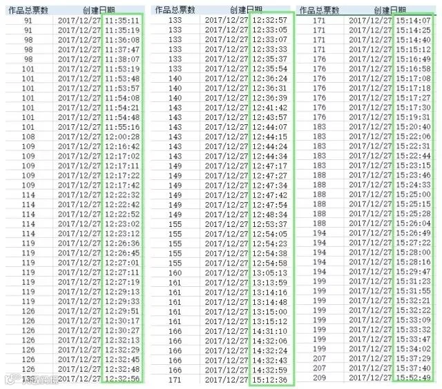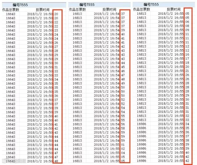 编号1555号:一分钟内连续多次同一秒投票平均3次,连续几个小时。
