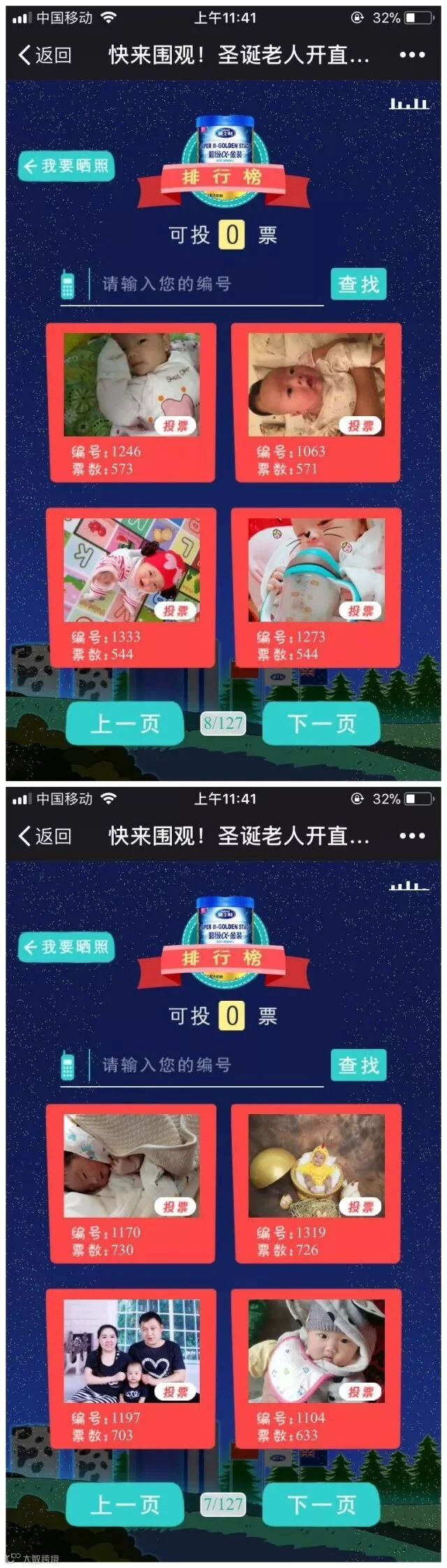 这一定是叫上了所有的亲戚朋友来给宝宝投票!