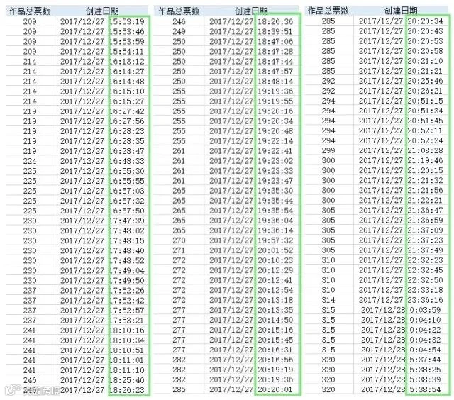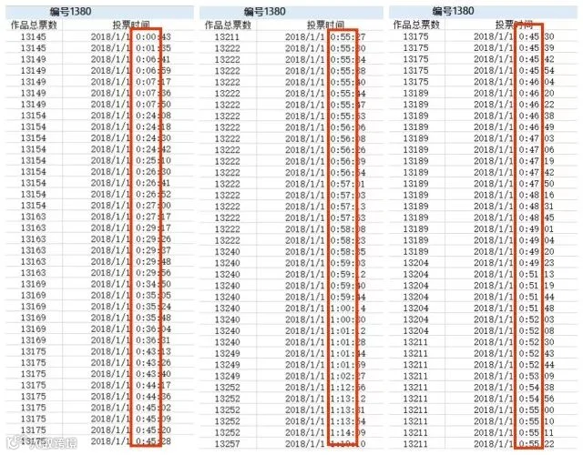 编号1380号:凌晨0:00-5:00有规律大规模机器刷票。