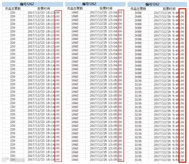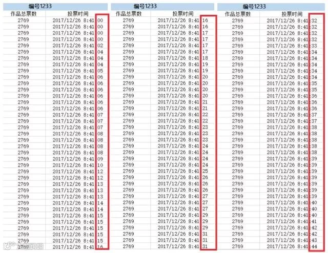 编号1233号:一分钟内连续多次同一秒投票4-5次,连续几个小时。