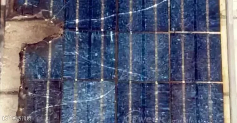 光伏组件在运输、搬运、安装等过程中,容易被踩踏、撞击,导致组件产生不易察觉的隐裂,极大影响组件输出功率。用EL变可以检测出来,如下图。