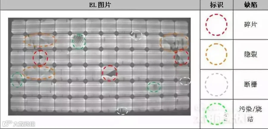 当光伏组件出现问题时,局部电阻升高,该区域温度就会升高。EL测试仪就像我们体检中的X光机一样,可以对光伏组件进行体检——通过红外图像拍摄,根据温度不同,图像呈现不同的颜色,从而非常容易的发现光伏组件的很多问题:隐裂、热斑、PID效应等。