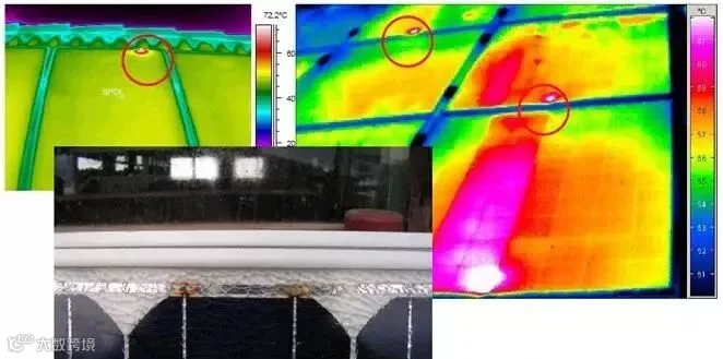 下图为热斑现象的红外照片(图片来自于TUV-Rheinland),红点部分为产生热斑处。