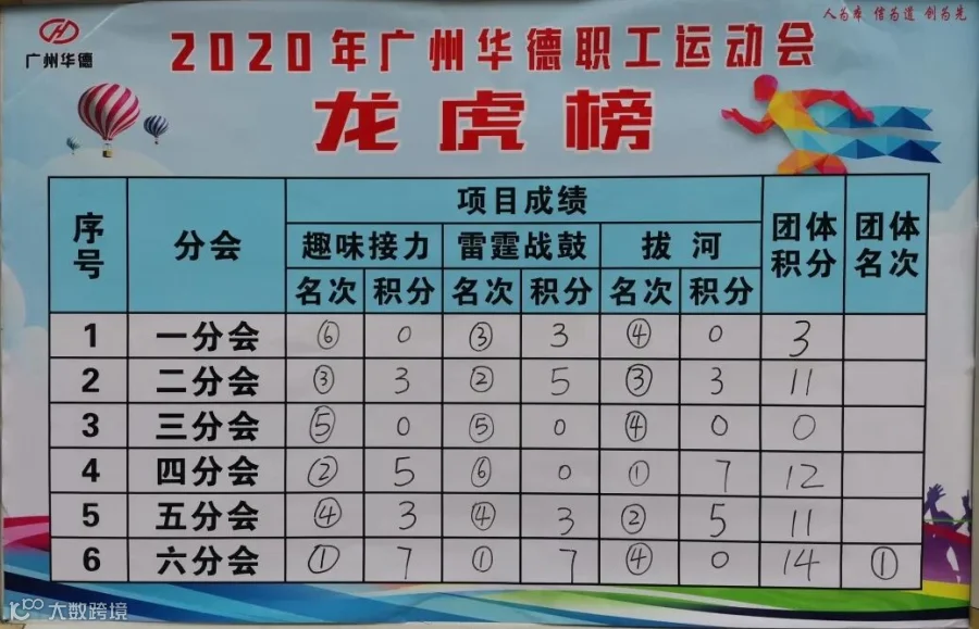 2020年职工运动会龙虎榜