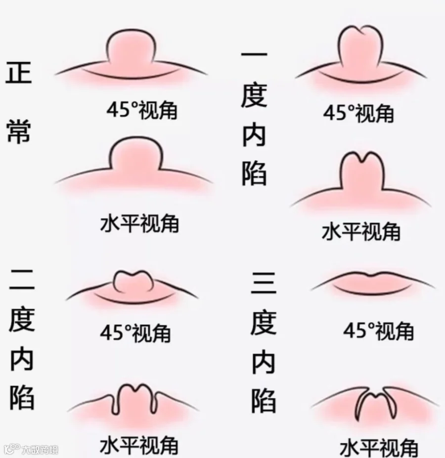 乳头凹陷,总共分三度: